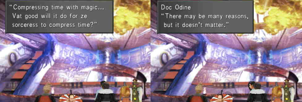 Squall’s not the only one indifferent to the Sorceress War or even FF8 lore itself. Doctor Odine, VIII’s Einstein-figure and lore-explainer, positively can’t be bothered: